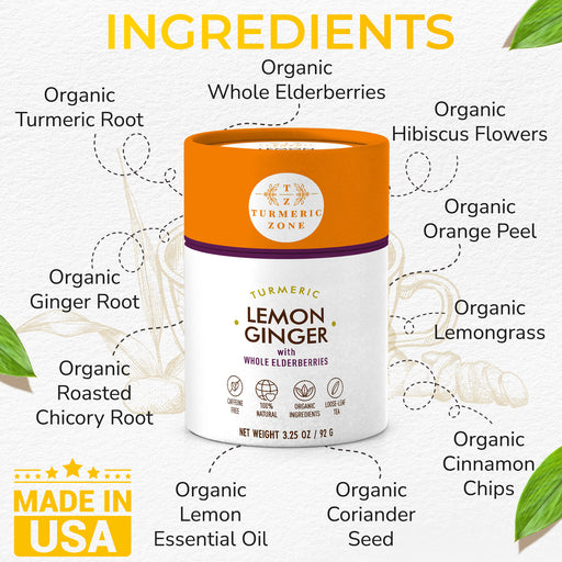 Turmeric Zone - Organic Turmeric Lemon Ginger with Elderberry Tea - 3.25 oz