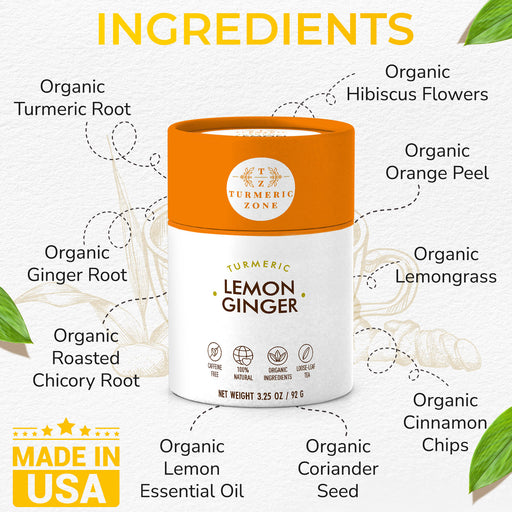 Turmeric Zone - Organic Turmeric Lemon Ginger Tea - 3.25 oz