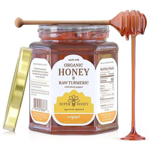 Experience the natural benefits of Ayurveda with SUPER HONEY - a unique blend of Eucalyptus Indian Turmeric Honey and Black Pepper. Made with ce...