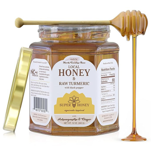 SUPER HONEY - North Carolina Turmeric Ashwagandha & Ginger Honey with Black Pepper - Ayurveda Inspired Pure Honey